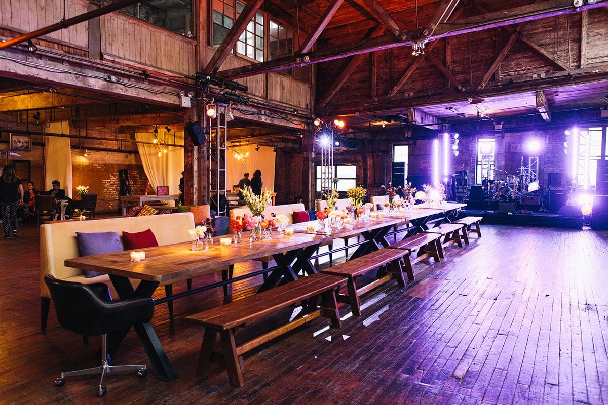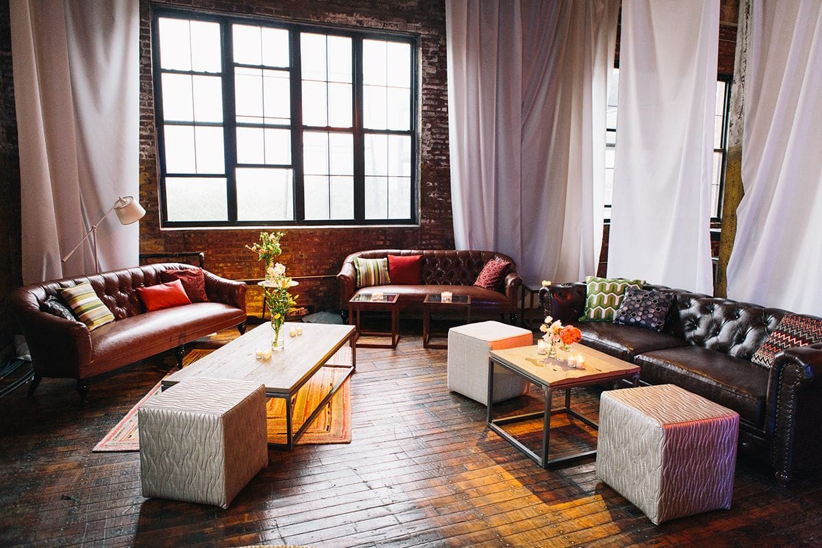 New York - Greenpoint Loft - The private evening event was designed in the style of an elegant living room in an artist's loft. Cosy sofa lounges invited guests to dine and chat, accompanied by impressive light art on the upper floor. The terrace also offered a breathtaking view of the Manhattan skyline, which rounded off the atmosphere perfectly.